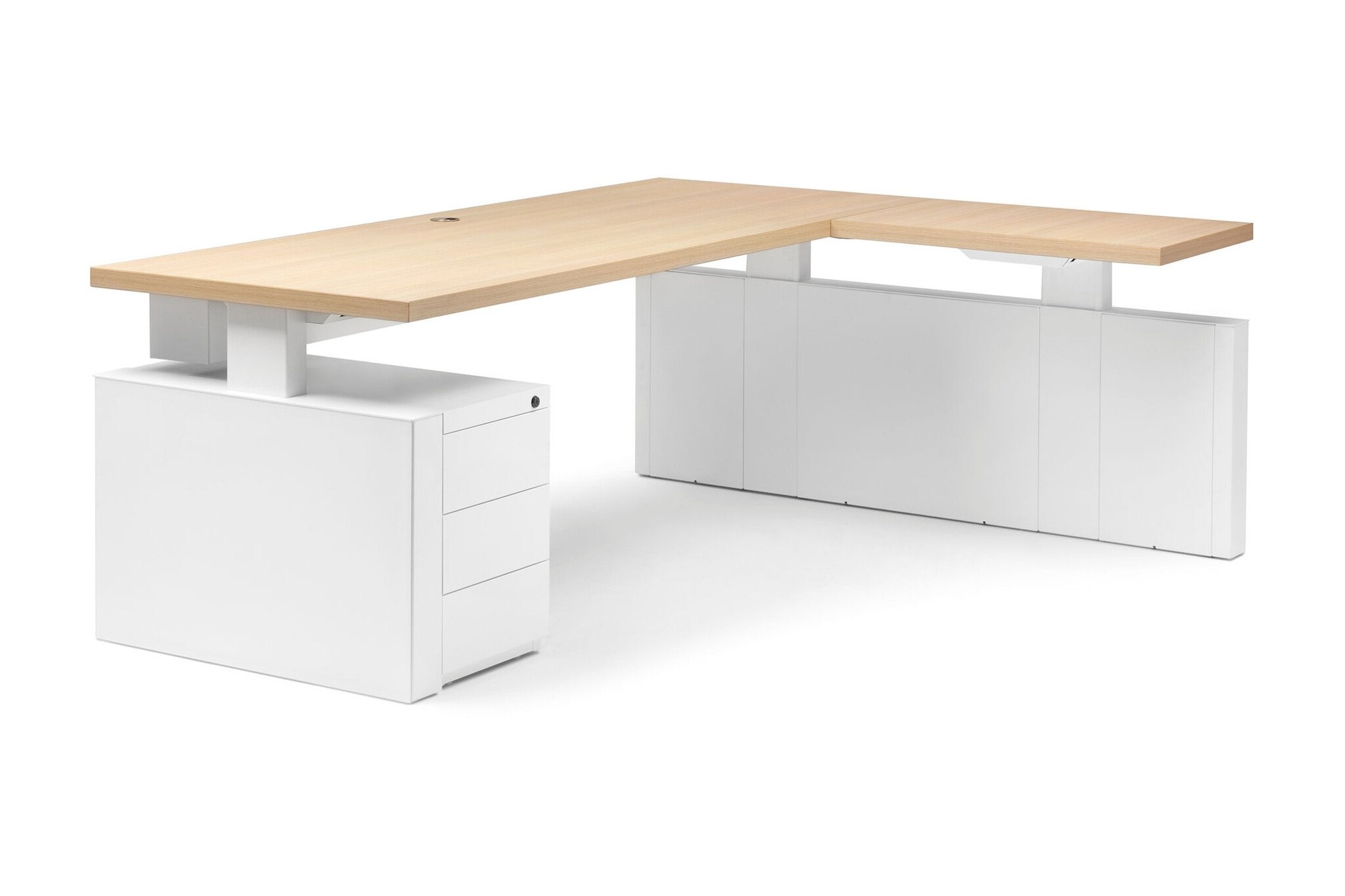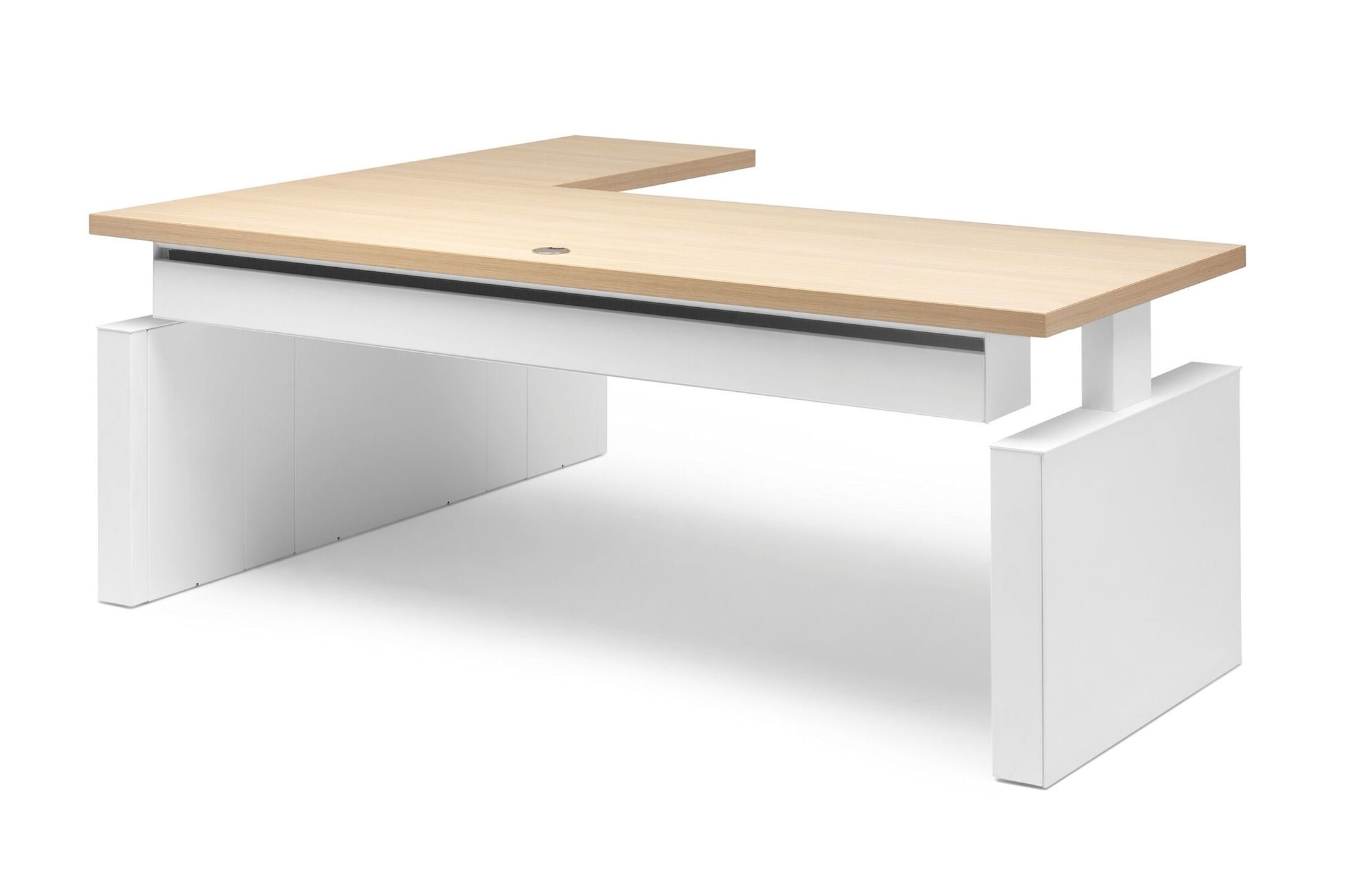 De werkplekken worden uitgevoerd in hoogte instelbare poten. De wangpoten zijn per 2 cm in hoogte instelbaar, tafelhoogte 62-86 cm. Door het afnemen van de binnenpanelen is de instelling bereikbaar.