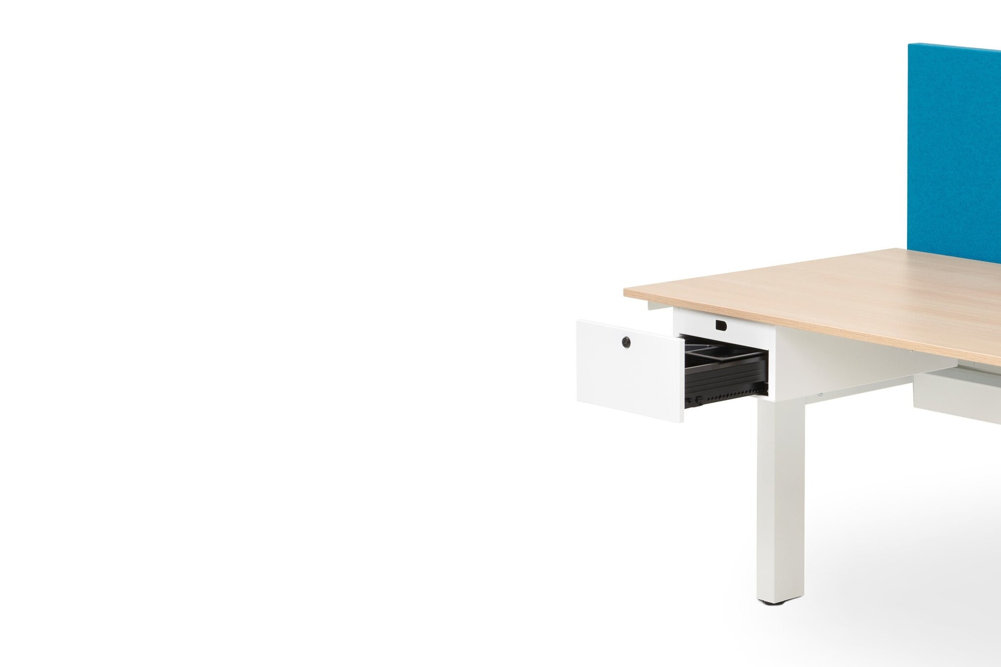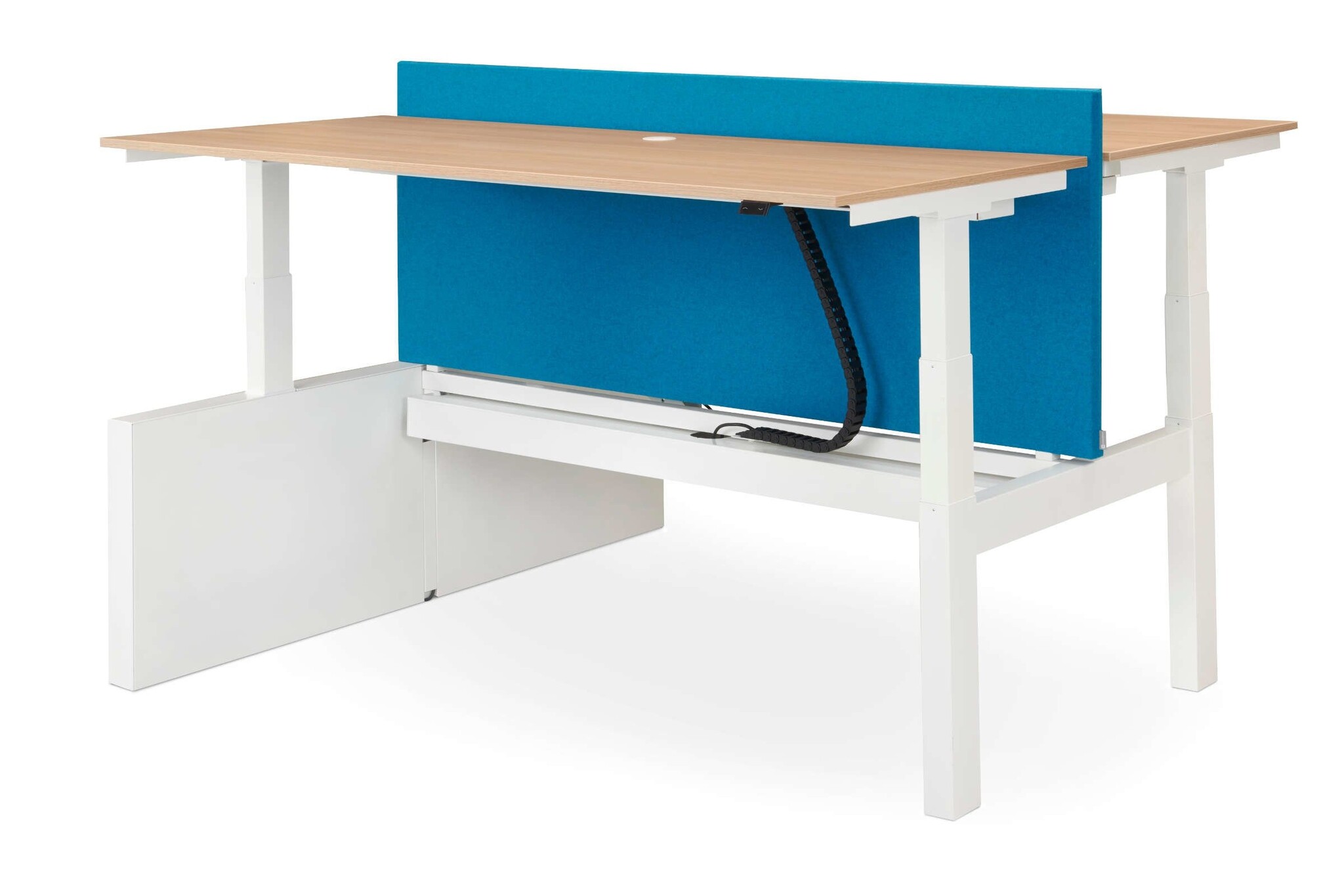 Het duo onderstel is tevens de solide basis voor montage van akoestische- en gestoffeerde bureauschermen en de kabelaorta. Het onderstel is minimaal 10 mm justeerbaar.