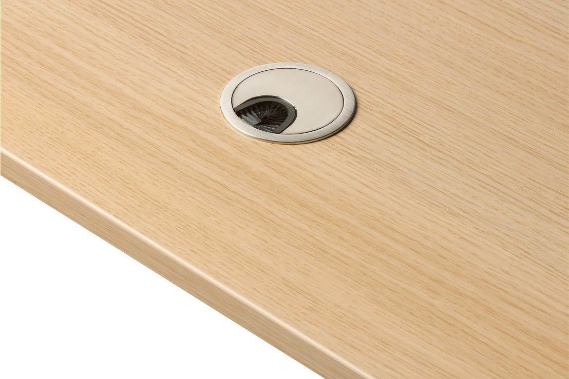De kabels van bijvoorbeeld uw monitor kunnen mooi worden weggewerkt met de kabelgoot onder het bureau en via de kabeldoorvoer in het bureau.