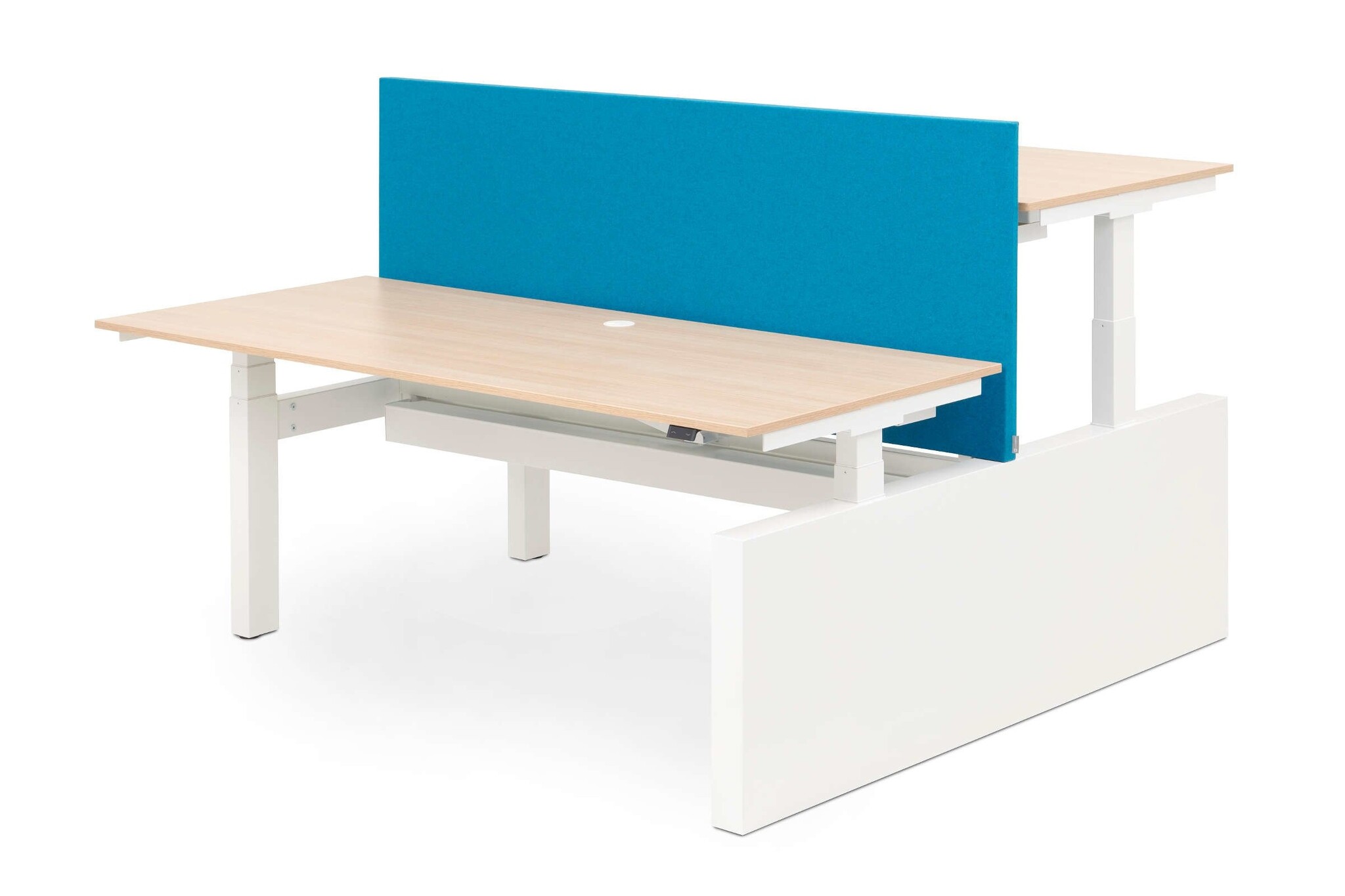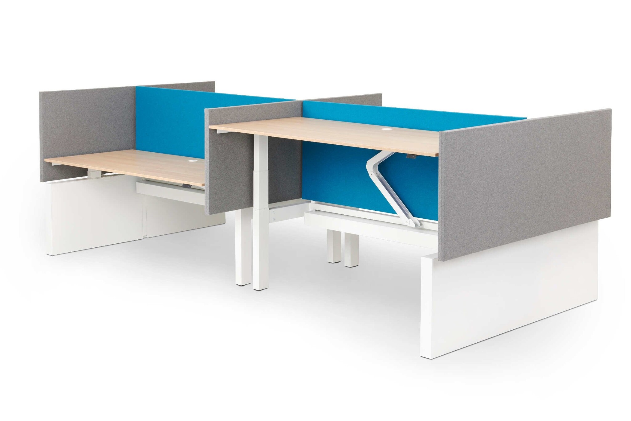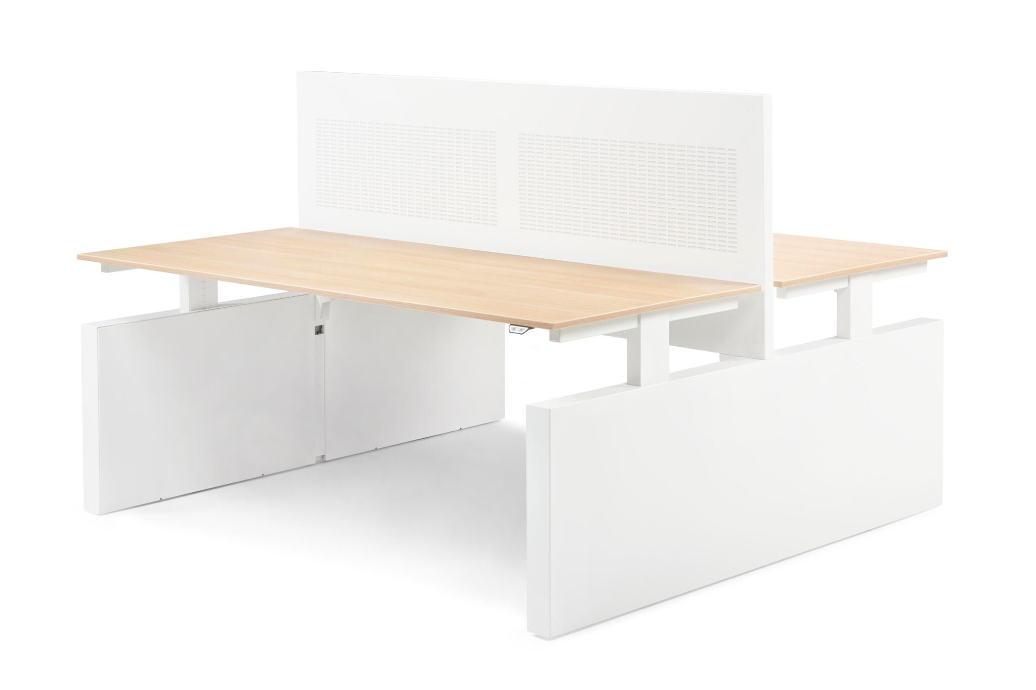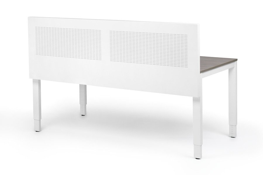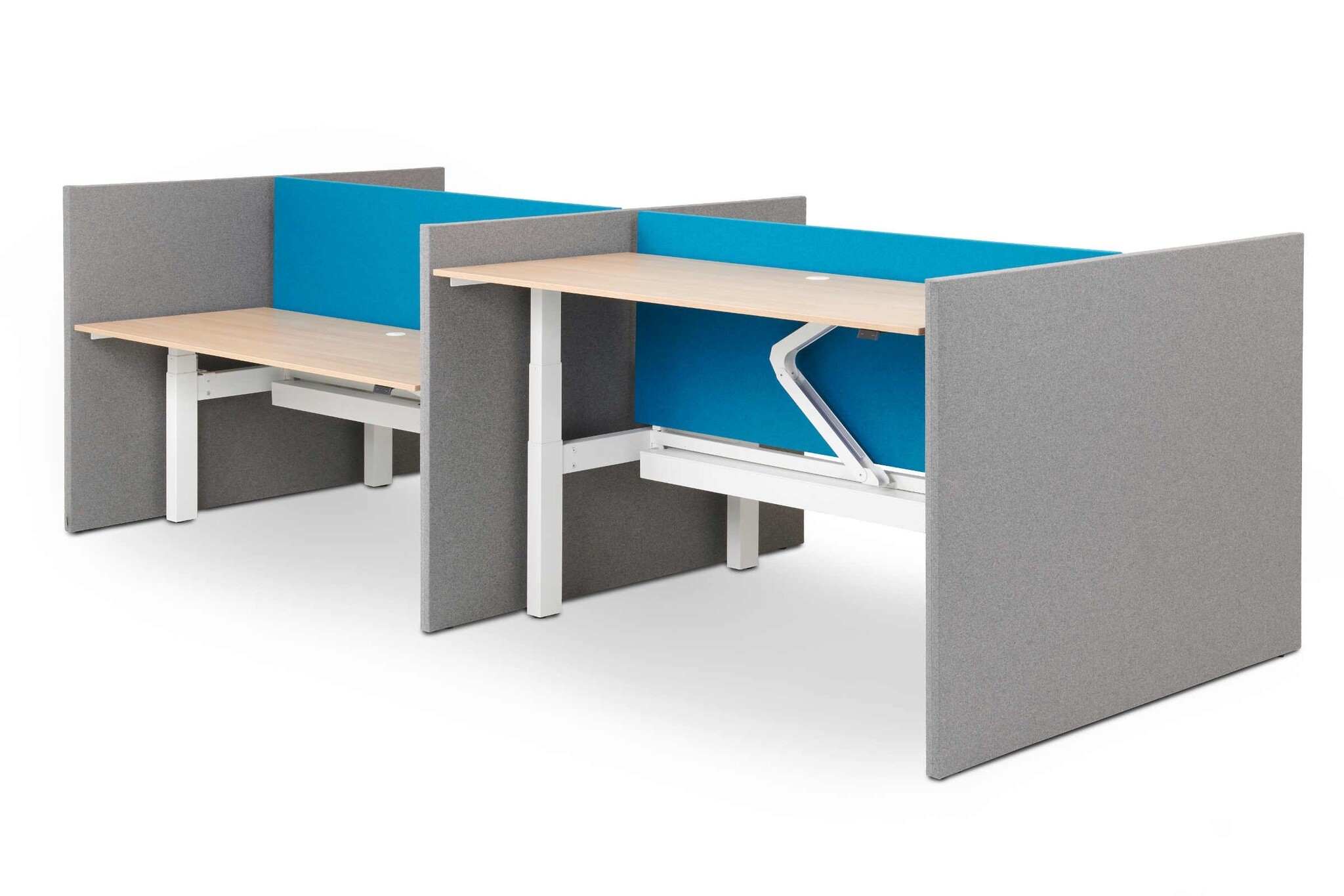 Voor de duo werkplekken zijn akoestisch gestoffeerde bureau- schermen beschikbaar welke zijn afgestemd op de maatvoering en de functie van deze werkplekken. Het bureauscherm word ondersteund door de H- of wang-poot van de duo werkplek. De bureauschermen hebben een hoogte van 112 cm. Deze hoogte biedt een vrij blikveld vanuit zitpositie en zorgt voor goede akoestiek. Er onstaat een overzichtelijke ruimte wanneer duo werkplekken met akoestische schermen in een open kantoorruimte geplaatst worden.
