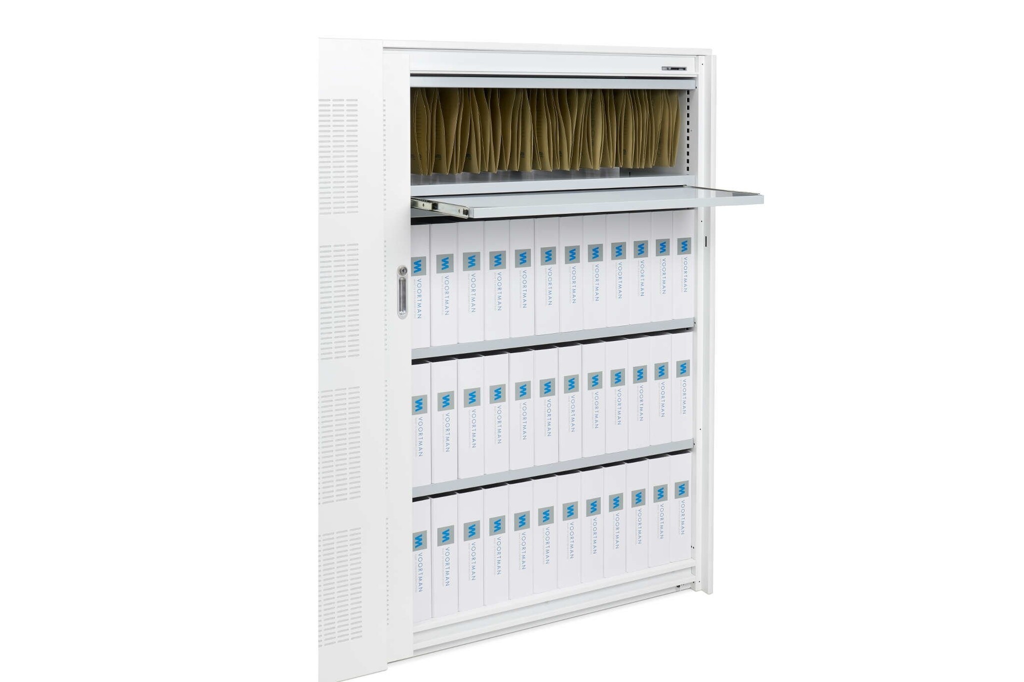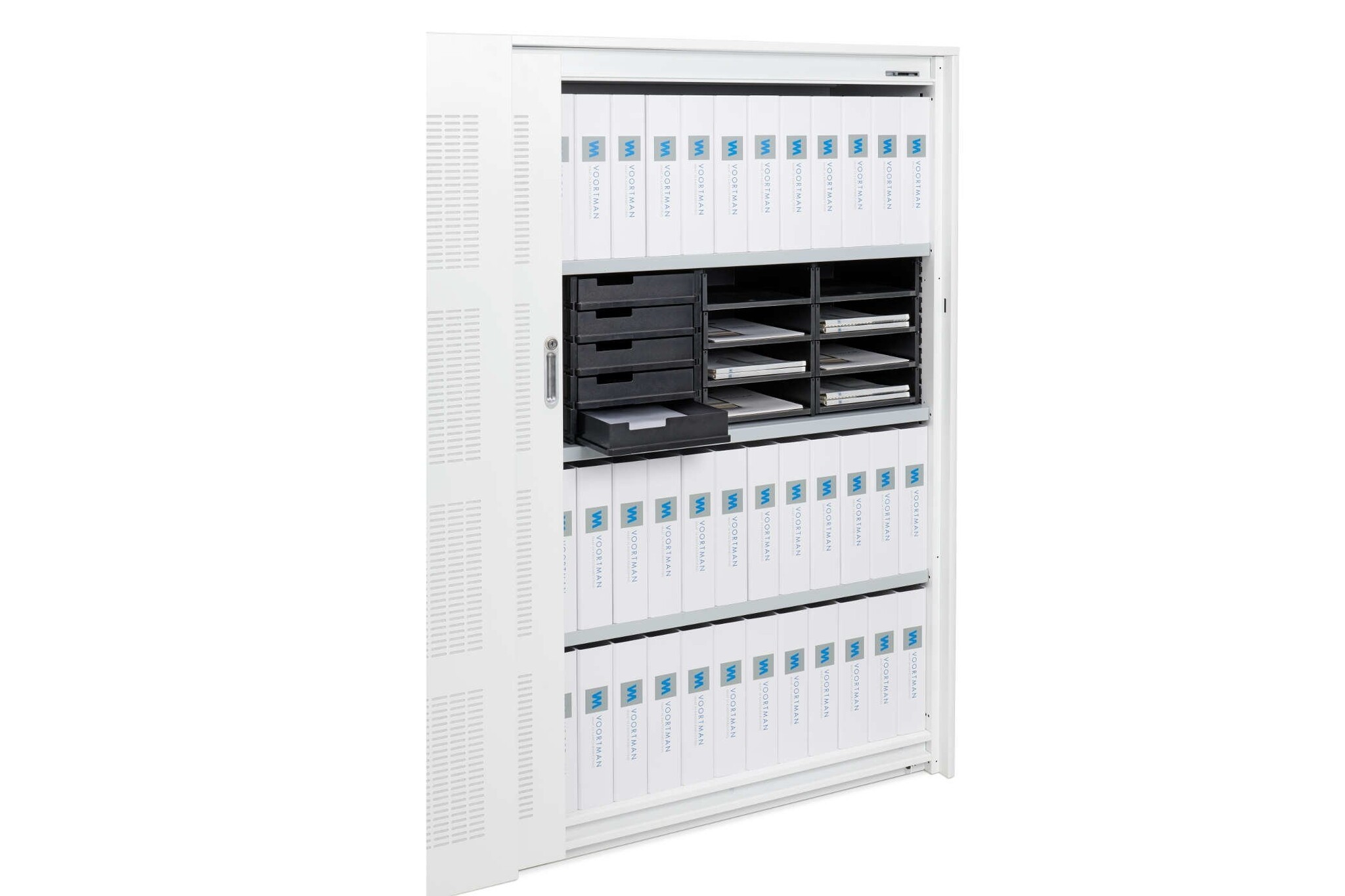 Roldeurkasten zijn veelzijdig toepasbaar, als functioneel opbergmeubel en voor een optimale invulling van de ruimte. De maatvoering en de eventuele afwerking met een topblad worden afgestemd op de plaats van deze meubelen in de ruimte. De Voortman roldeurkasten kunnen naar wens uitgevoerd worden met stalen, dan wel kunststof roldeuren. Roldeurkasten met stalen lameldeuren zijn door de strakke vormgeving en keuzevrijheid in lakafwerking optimaal in te passen in de stijl en kleurstelling van het kantoor.