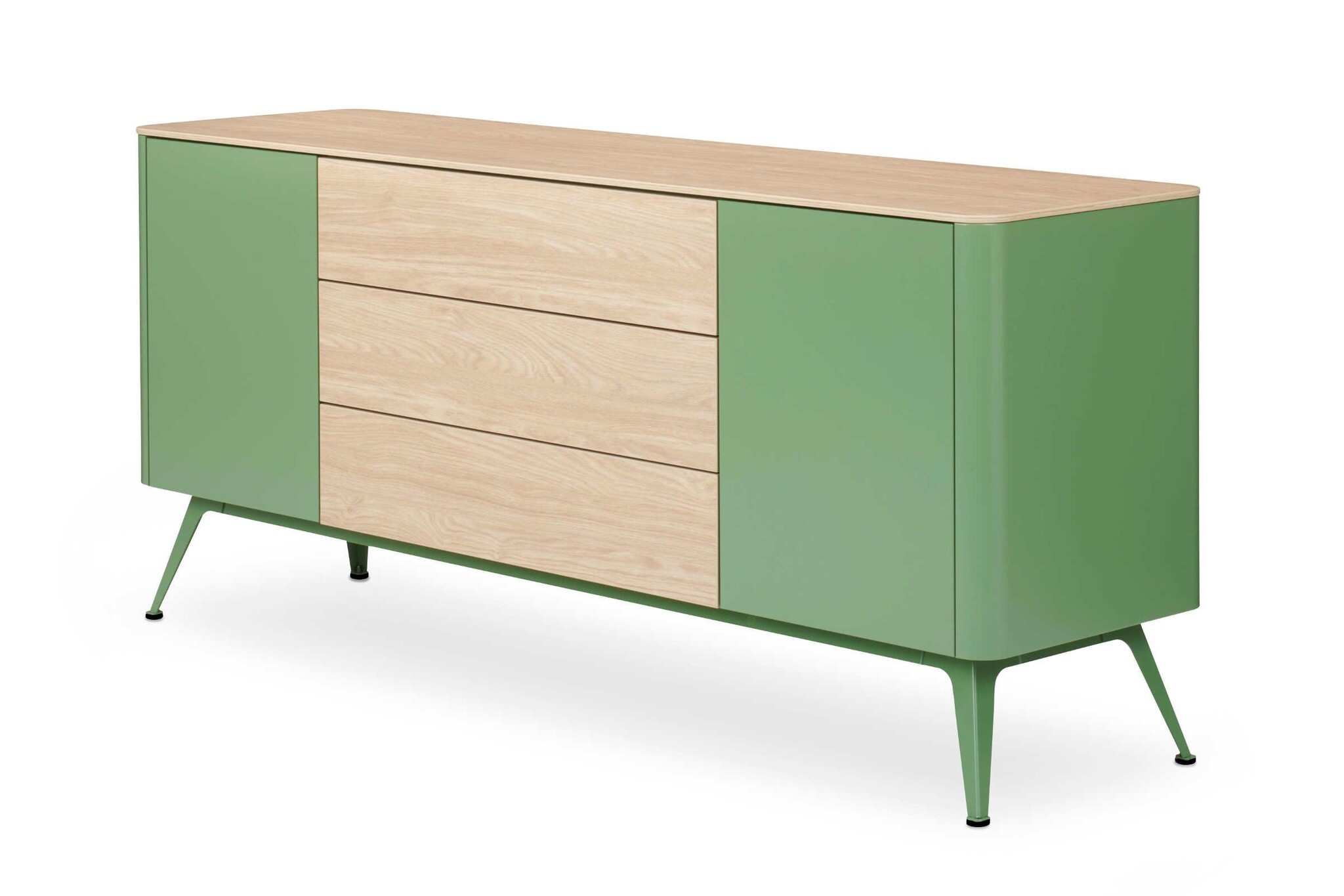 De draaideuren en ladefronten zijn naar keuze leverbaar in gelakt staal in 4 uni-kleuren, 4 metallic en 3 structuurlakken, HPL (High Pressure Laminate) of een combinatie van deze materialen. Het kastblad is standaard afgewerkt met HPL.