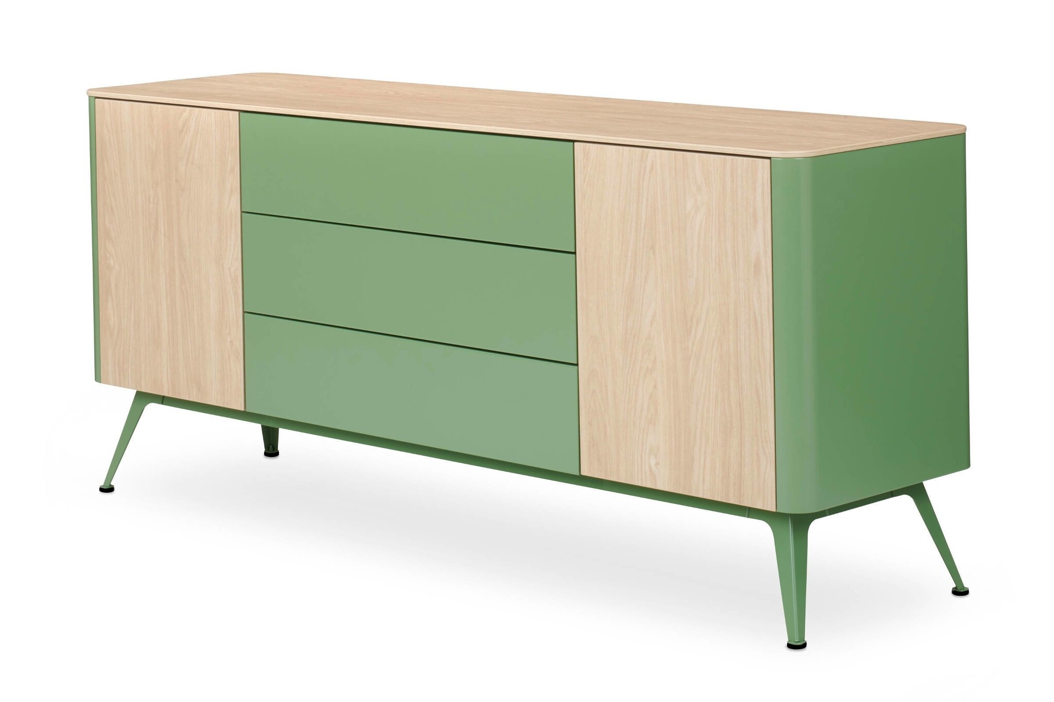 De indeling van het dressoir is naar keuze met deuren, laden of open vakken.