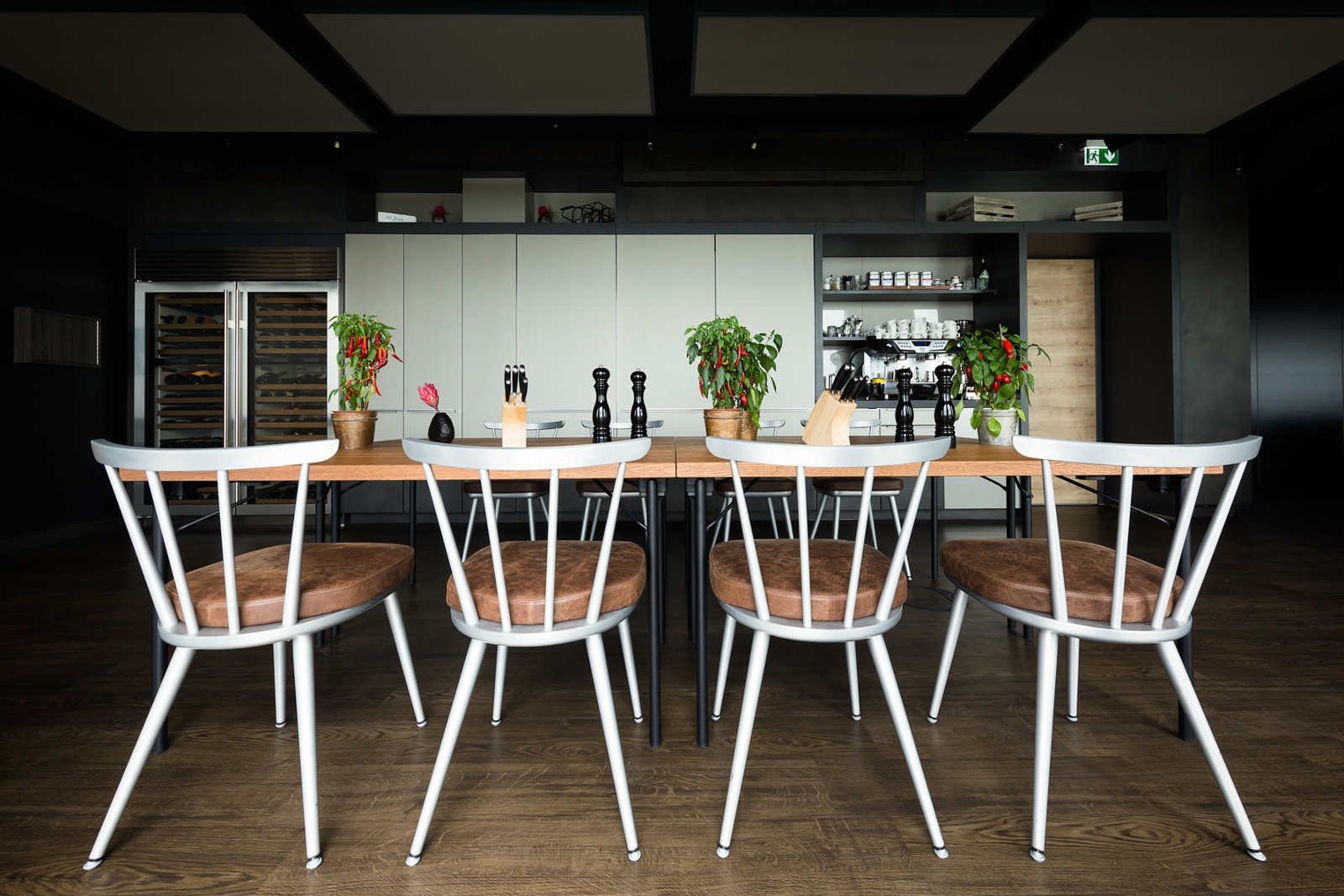 De Wagner W-2010 barkruk sluit naadloos aan op deze stoel. Ideaal voor de inrichting van bijvoorbeeld een restaurant of café.