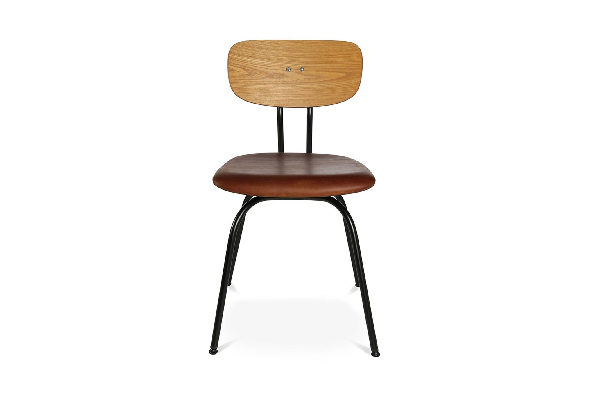 De zitschaal en rugleuning van de stoel bestaan uit hout. U kunt zelf kiezen welke houtsoort: beuken of eiken.