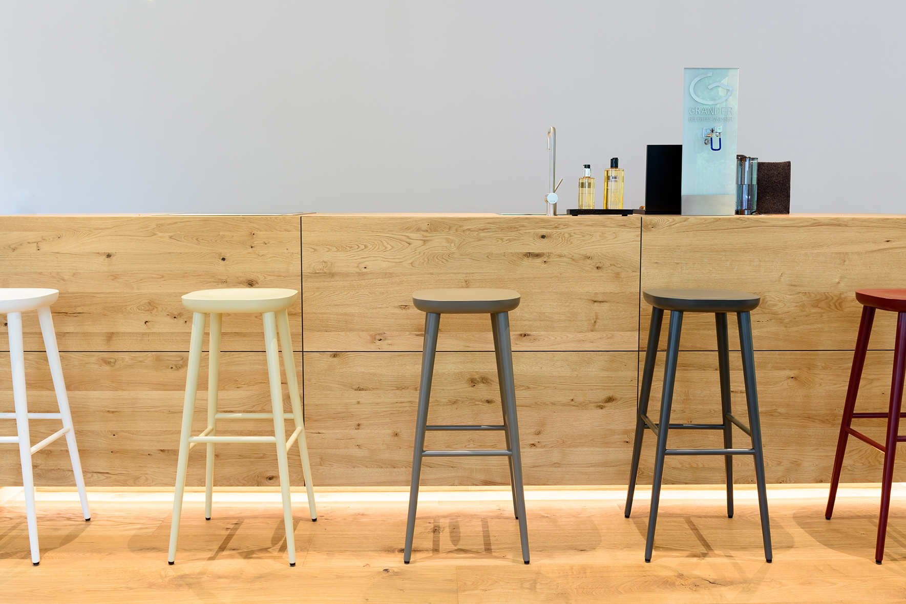 De zitting van de kruk heeft een vierkante vorm. Om het gemak te optimaliseren, zijn de hoeken van de kruk afgerond. Hierdoor stapt u prettiger van de kruk af.