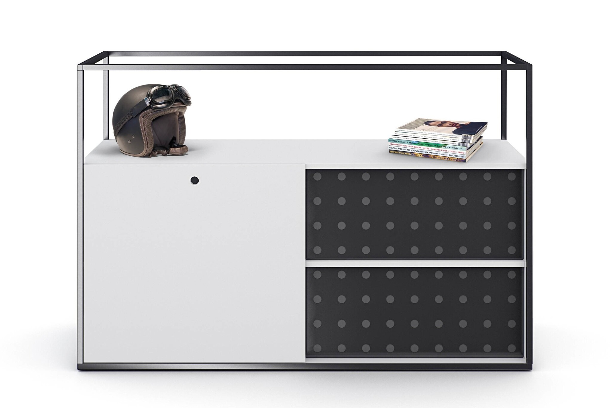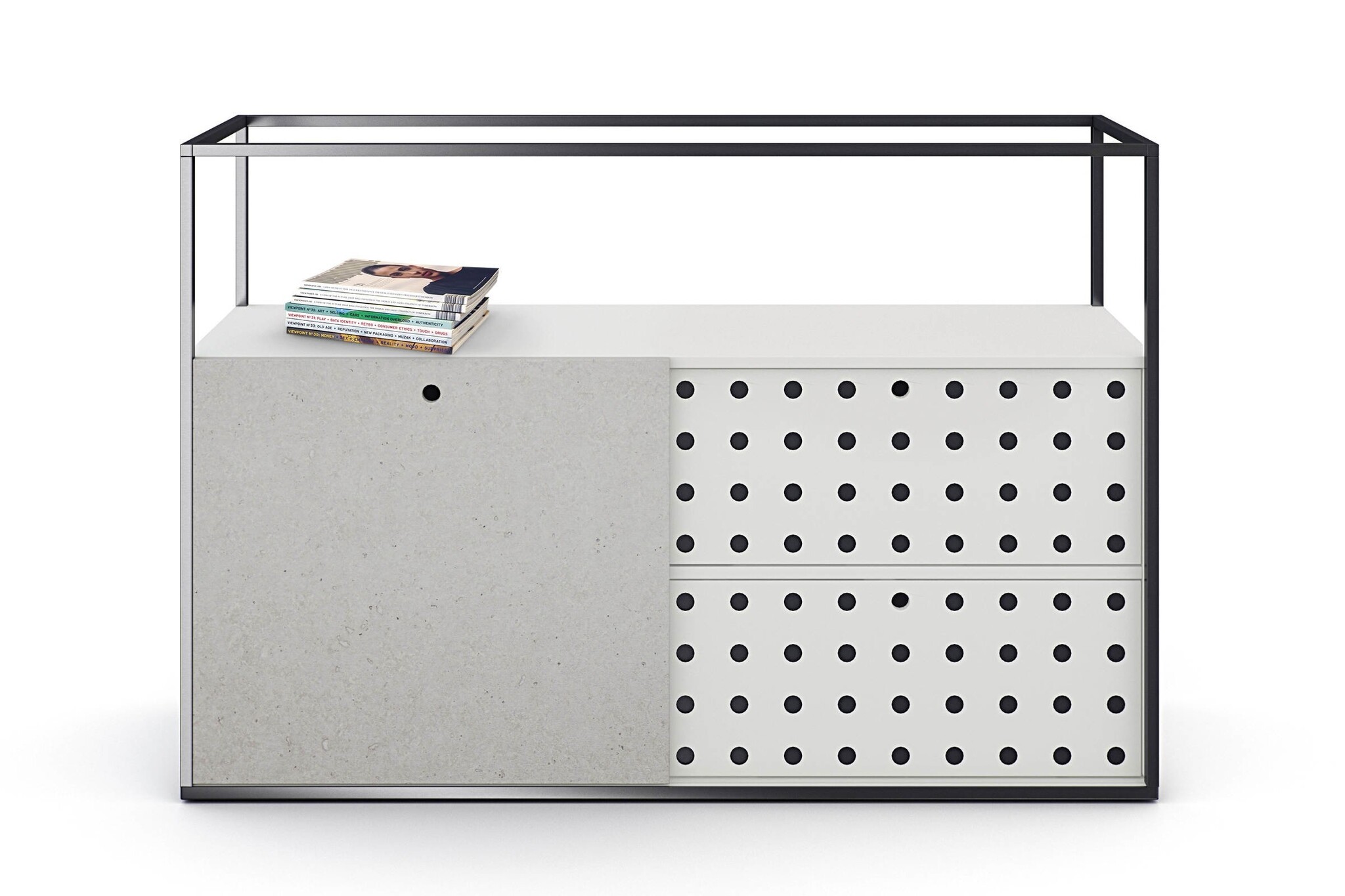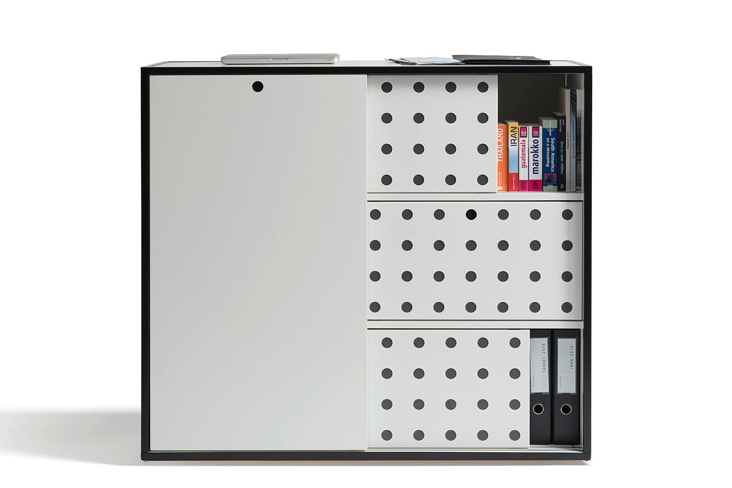 De Wiesner Hager Cage is een serie kasten, ontworpen door Neunzig Design, die de perfecte oplossing voor zowel opslag als het maken van verschillende zones in grote ruimtes. Ideaal als scheidingswandDeze serie kasten hebben tal van mogelijkheden en opties. De Wiesner Hager Cage is een echte eyecatcher en een lust voor oog in elke kantoorruimte. De kast is te gebruiken als opbergruimte maar ook als scheidingswand om bijvoorbeeld ruimten te creëren in een kantoortuin. Het Cage kastensysteem is uniek doordat de basis bestaat uit een stalen raamwerk. Hierop is ook de naam van deze kastenserie gebaseerd.