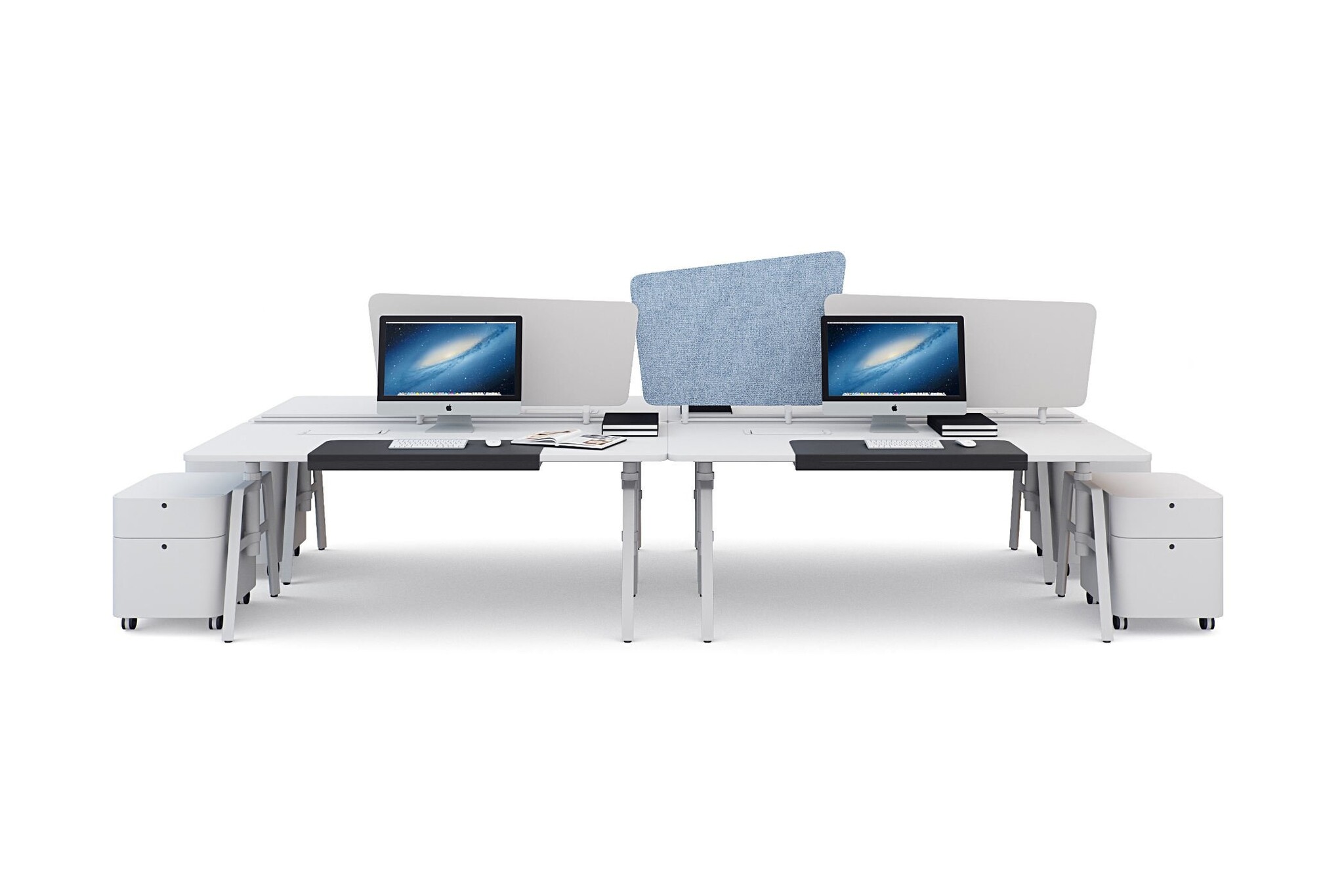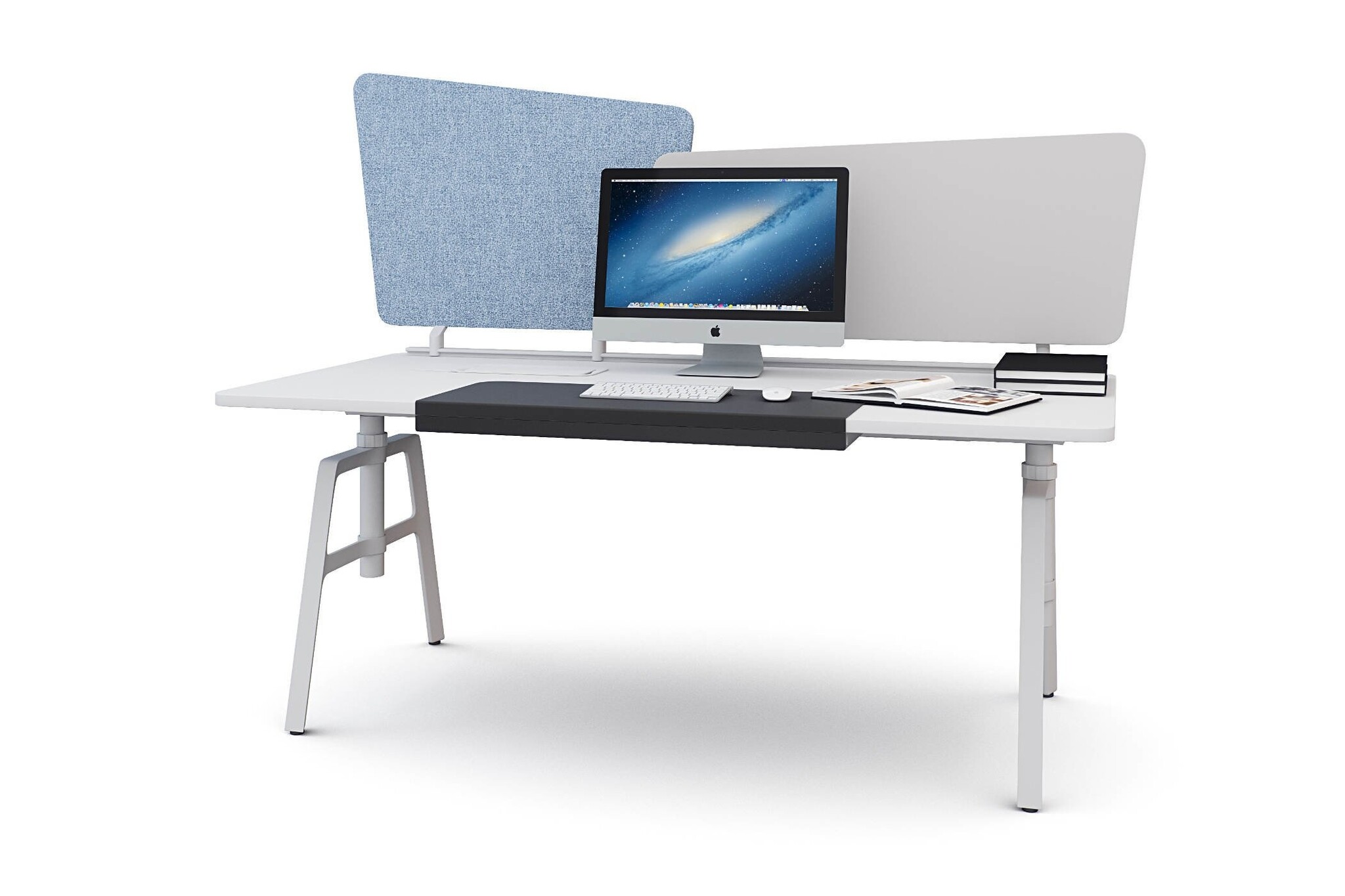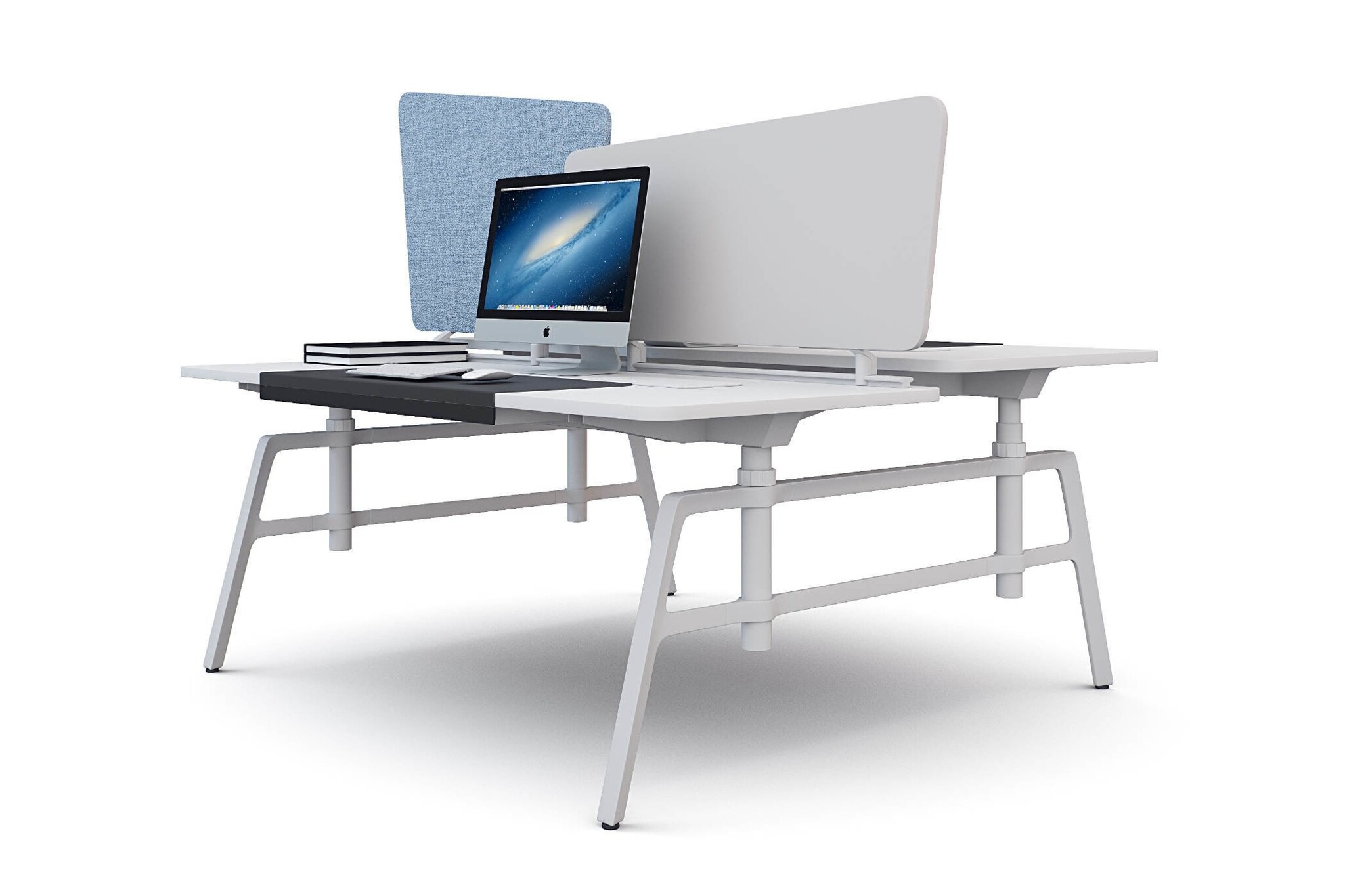 De Etio van Wiesner Hager is een kantoor tafelprogramma met verschillende mogelijkheden. Leverbaar als bureau met of zonder scheidingswanden om open of gesloten te werken. De tafel heeft een onderscheidende A-vormige aluminium poot. De hoogte van het tafelblad is eenvoudig verstelbaar, waardoor de tafel ideaal als bureau te gebruiken is door verschillende mensen. Makkelijk toepasbaar in ruimtes waar flexibel gewerkt wordt. Schermen | wanden van verschillende vormen en materialen zorgen voor het vereiste niveau van privacy. Schermen, monitors, bureaulampen of trays kunnen met behulp van een organisator rail gemonteerd worden aan het tafelblad.Kenmerken Wiesner Hager Etio werkplek
