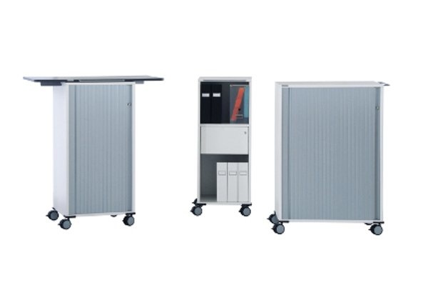Float-fx trolleys; trolley uitgevoerd met 4 dubbele wielen en voorzien van handgrepen voor extra wendbaarheid. De trolley’s zijn verkrijgbaar met werkbladen waardoor de trolley kan fungeren als tijdelijke sta-werkplek. Mogelijk in verschillende modules, maximale uitvoering met 5 lades en schrijfmaterialenlade. Optioneel met: werkblad, beugelgreep, schuiflade, uitklapbare kledinghaak, hangmappenframe, kastinrichting-combinatie.