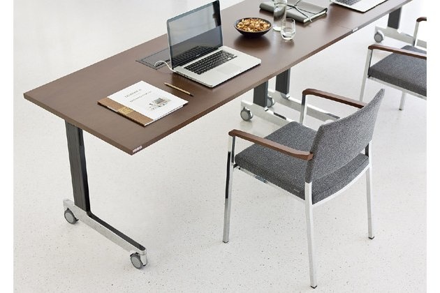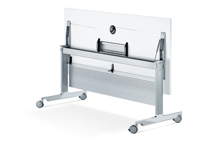 Een persoonlijk gesprek of een heuse conferentie: n_table kan snel en zonder montagewerk aan alle situaties worden aangepast. Dankzij het naar buiten toe geplaatste onderstel en de slanke, rechte poten biedt n_table maximale beenruimte. Het blad kan verticaal worden gekanteld, zodat tijdelijk overtollige tafels op een plaatsbesparende manier kunnen worden geparkeerd. De gasveer zorgt ervoor dat het blad soepel en geleidelijk kantelt. n_table kan optioneel van electrificatie, een intelligent kabelmanagement of een snelkoppeling worden voorzien. Bijzondere kenmerken Wiesner Hager N Table klaptafel