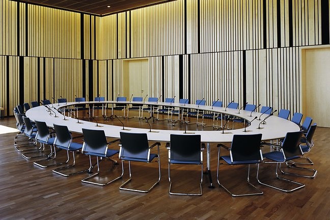 De Wilkhahn Logan tafel is ook te leveren op wielen en te gebruiken als flexibele vergadertafel.