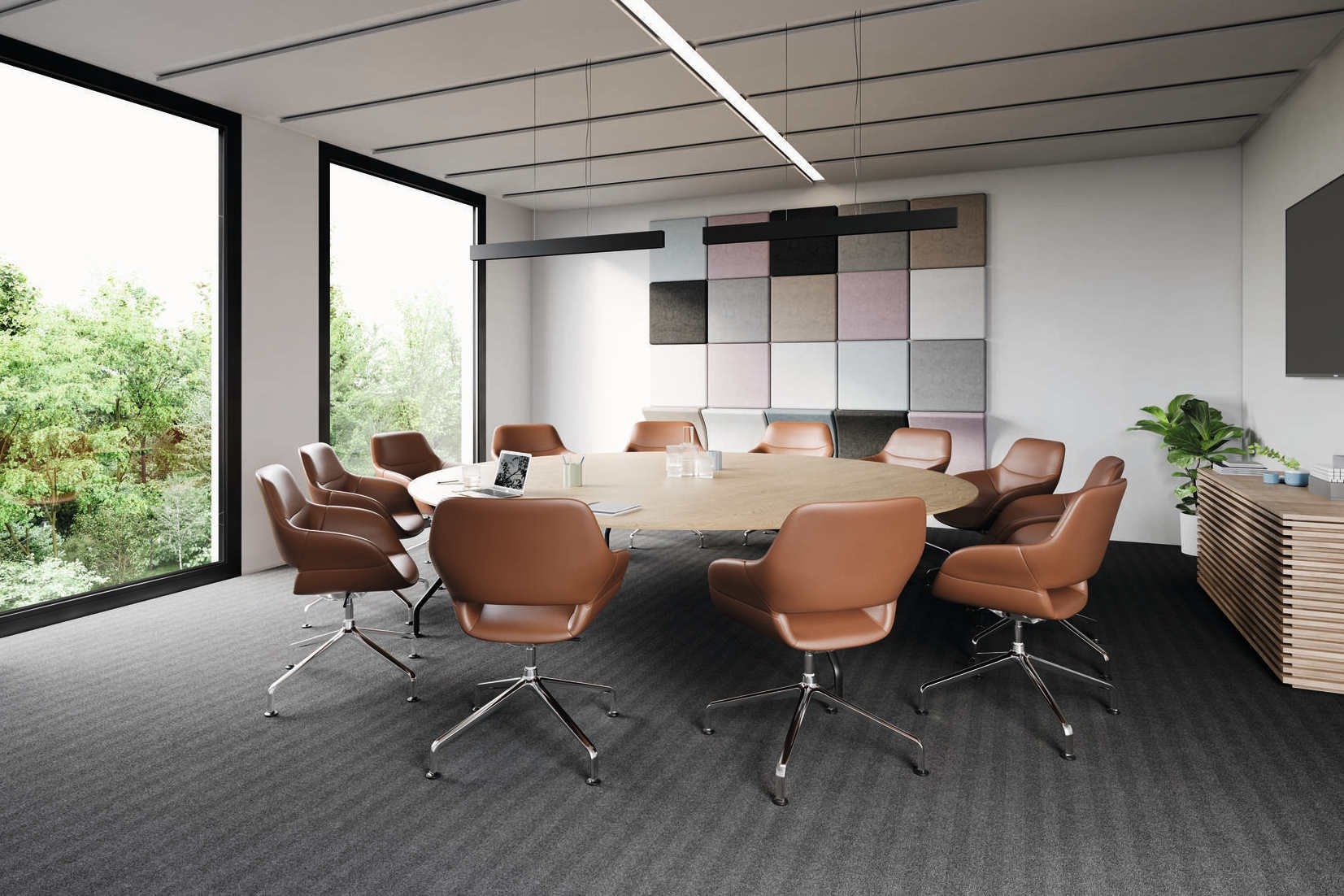 De vergaderstoel is standaard leverbaar in leer, en in zes verschillende stofgroepen waaronder de nieuwe stoffen Era en Crea, beiden met een 100.000 Martindale-waarde, zodat deze minder snel slijten en voor intensief gebruik toe te passen is.
