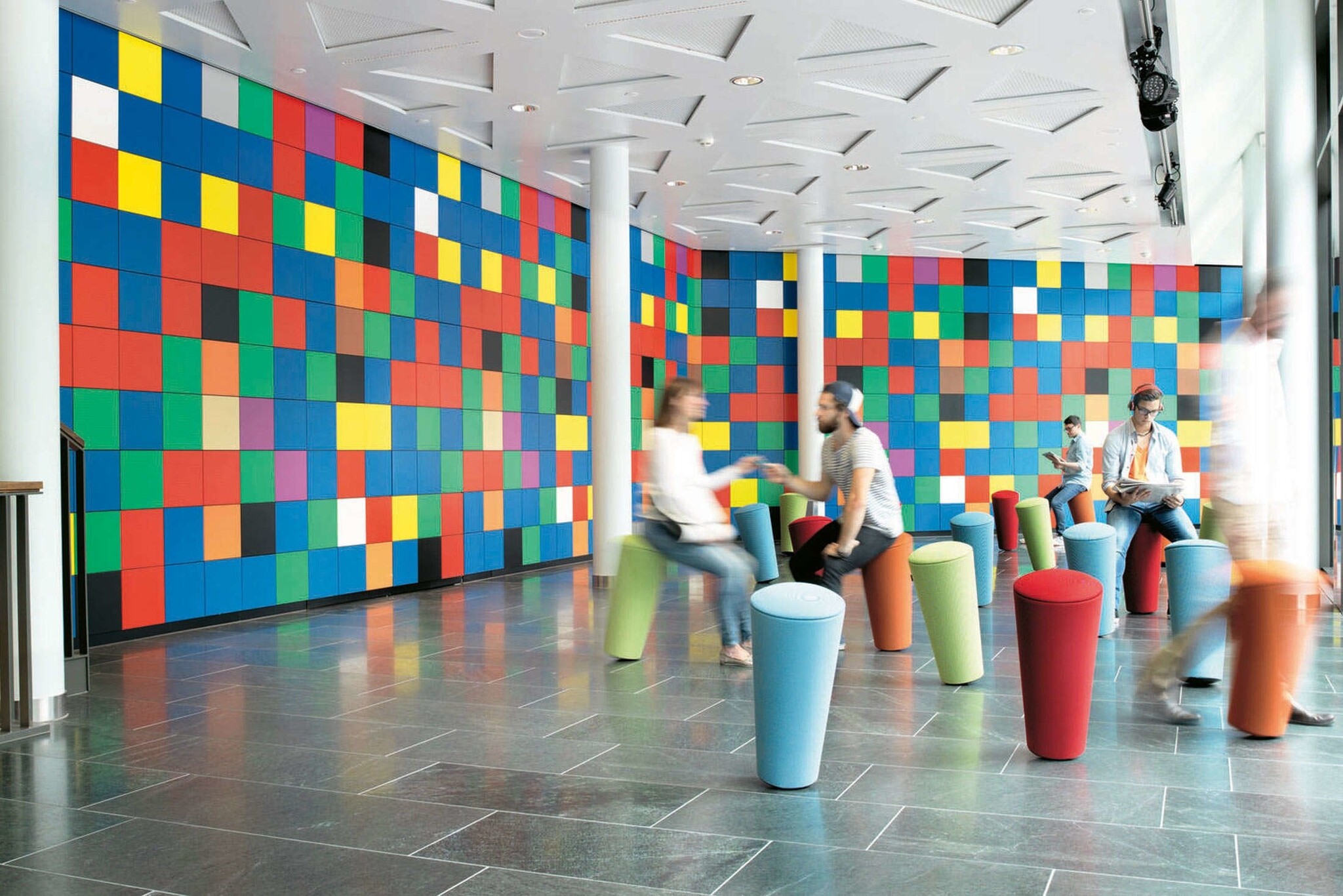 Het driedimensionale structuur zorgt voor een eigentijdse uitstraling en heeft zelfs een geluiddempende werking. Stand Up is ideaal voor het nieuwe werken, waar de serieuze kant van het leven op een speelse manier kan worden benaderd.