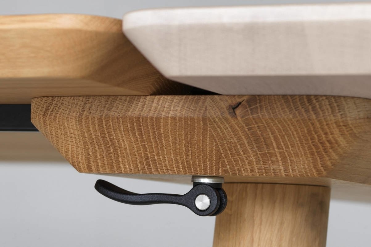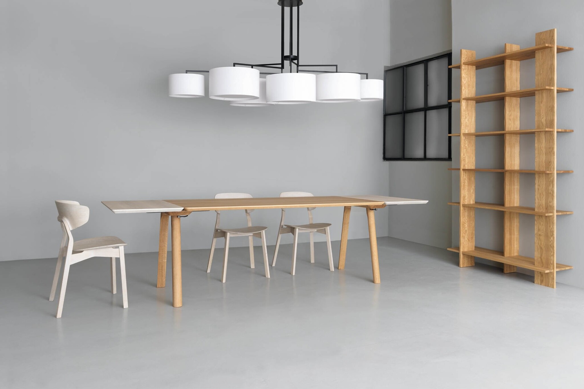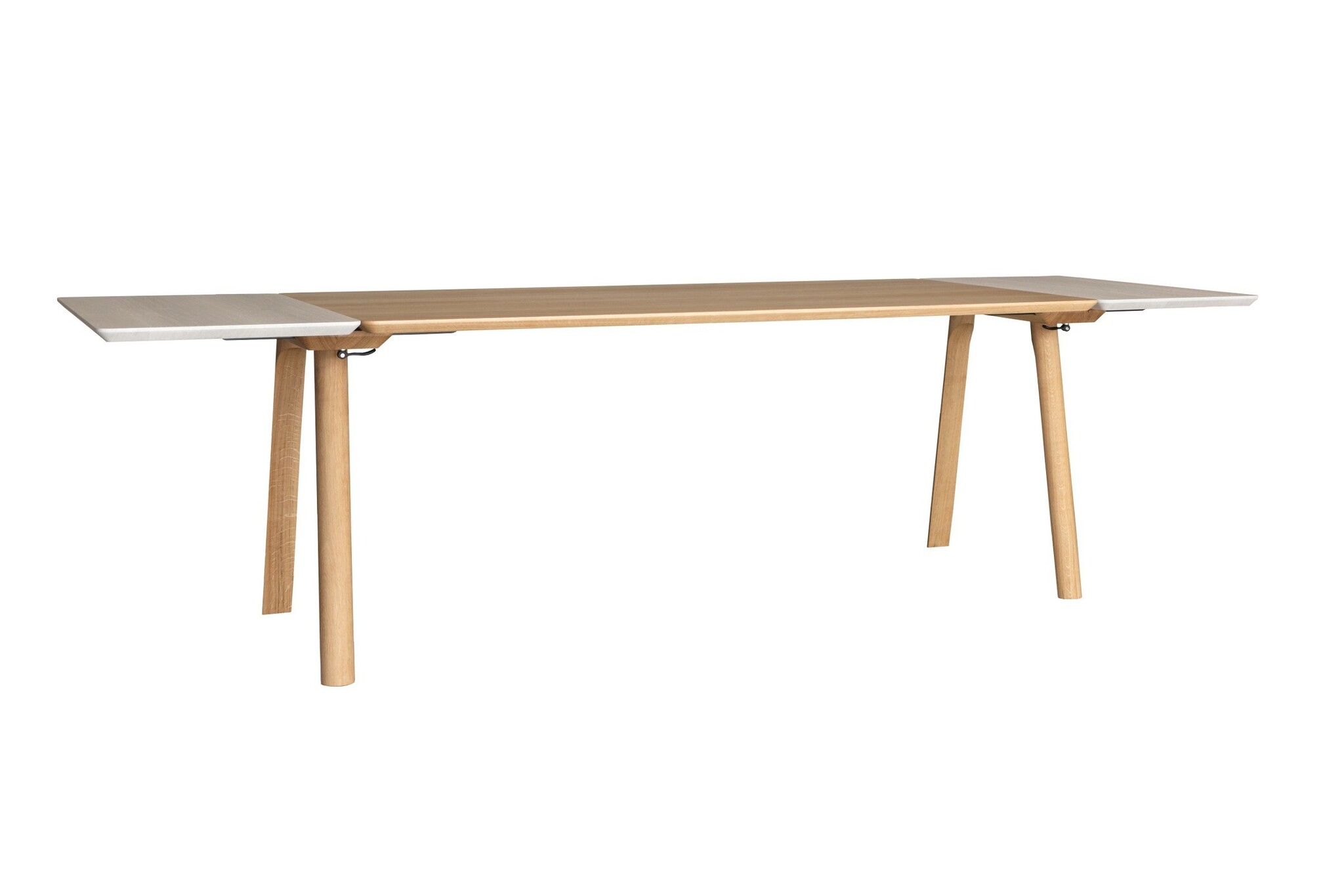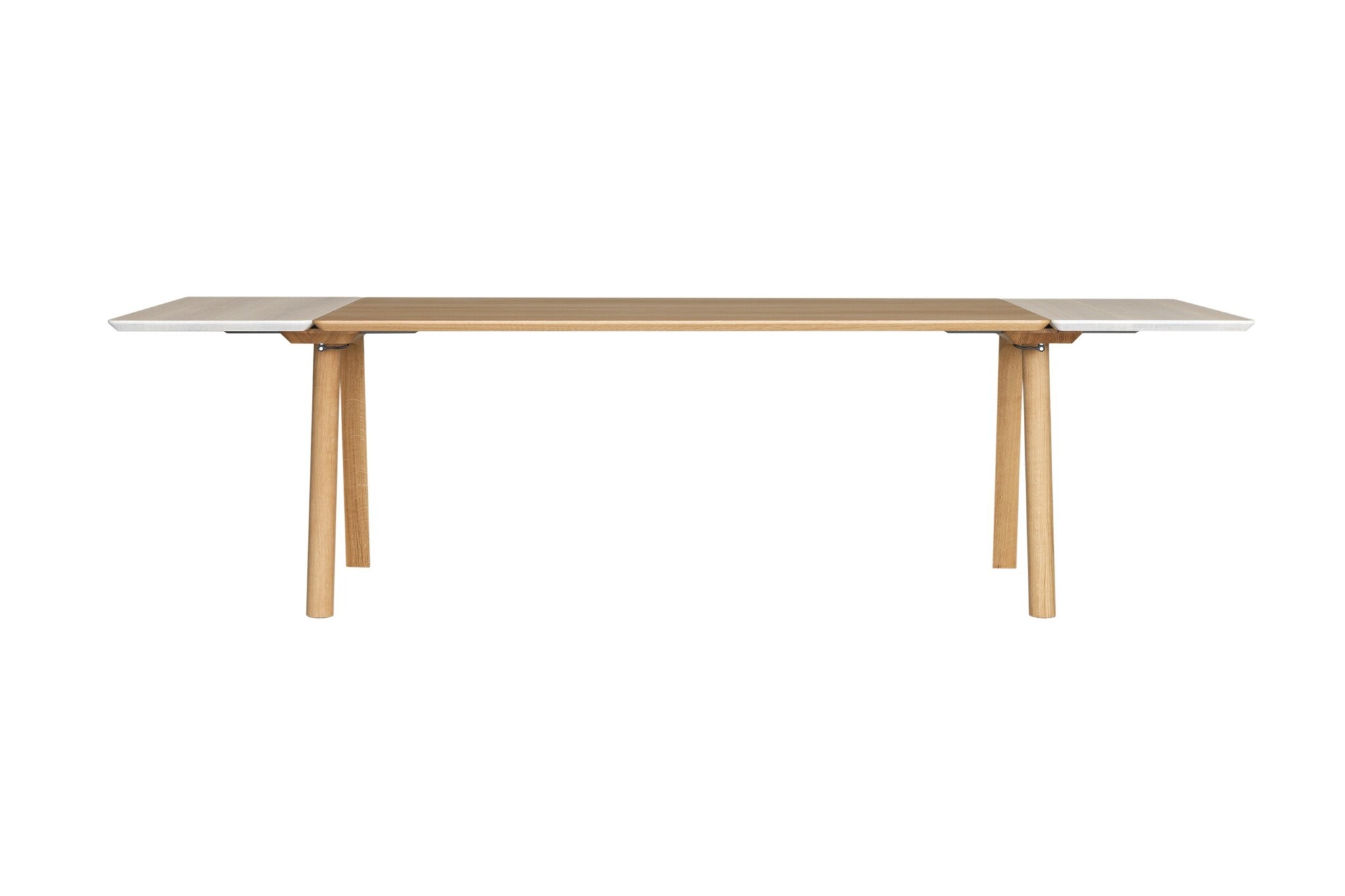 De Rail van Zeitraum is een robuuste houten tafel met een ongedwongen karakter. Het frameloze tafelblad maakt dat de tafel licht en eenvoudig oogt. De Zeitraum Rail is eventueel te verlengen met een verlengblad aan beide zijden. Om dit mogelijk te maken zijn er extra schragen om de uitbreiding van het tafelblad te ondersteunen.