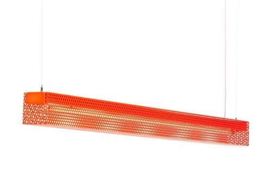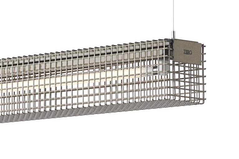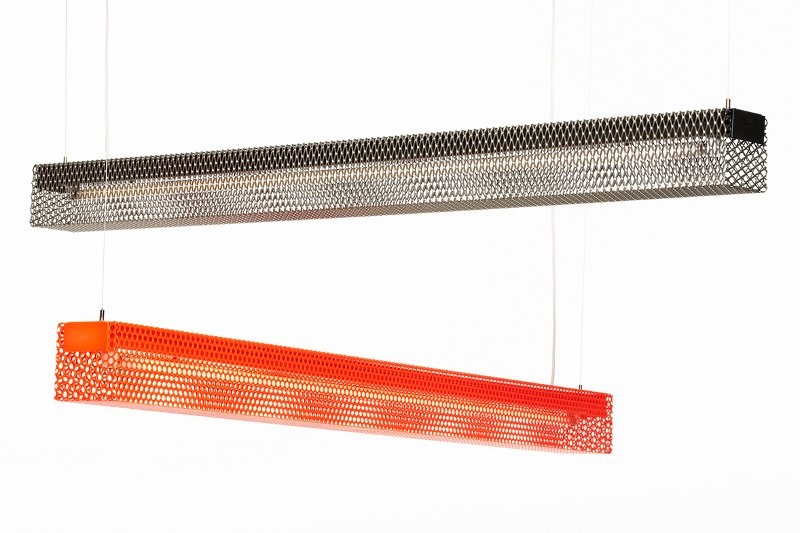 Zero Grid hanglamp is gemaakt van geperforeerd metaal. De lamp is leverbaar in het geel, oranje, helder gelakt metaal of transparant goud lak. De Grid lamp heeft een ruwe industriële afwerking. De lamp wordt geleverd met kabel (2 meter) en stekker. De lamp heeft een afmeting van L 1250 x B 96 x H96 cm.