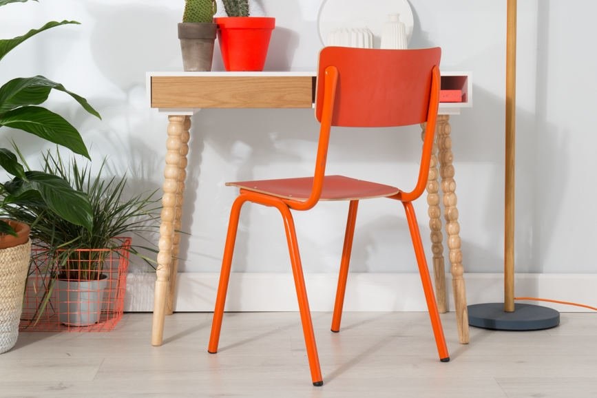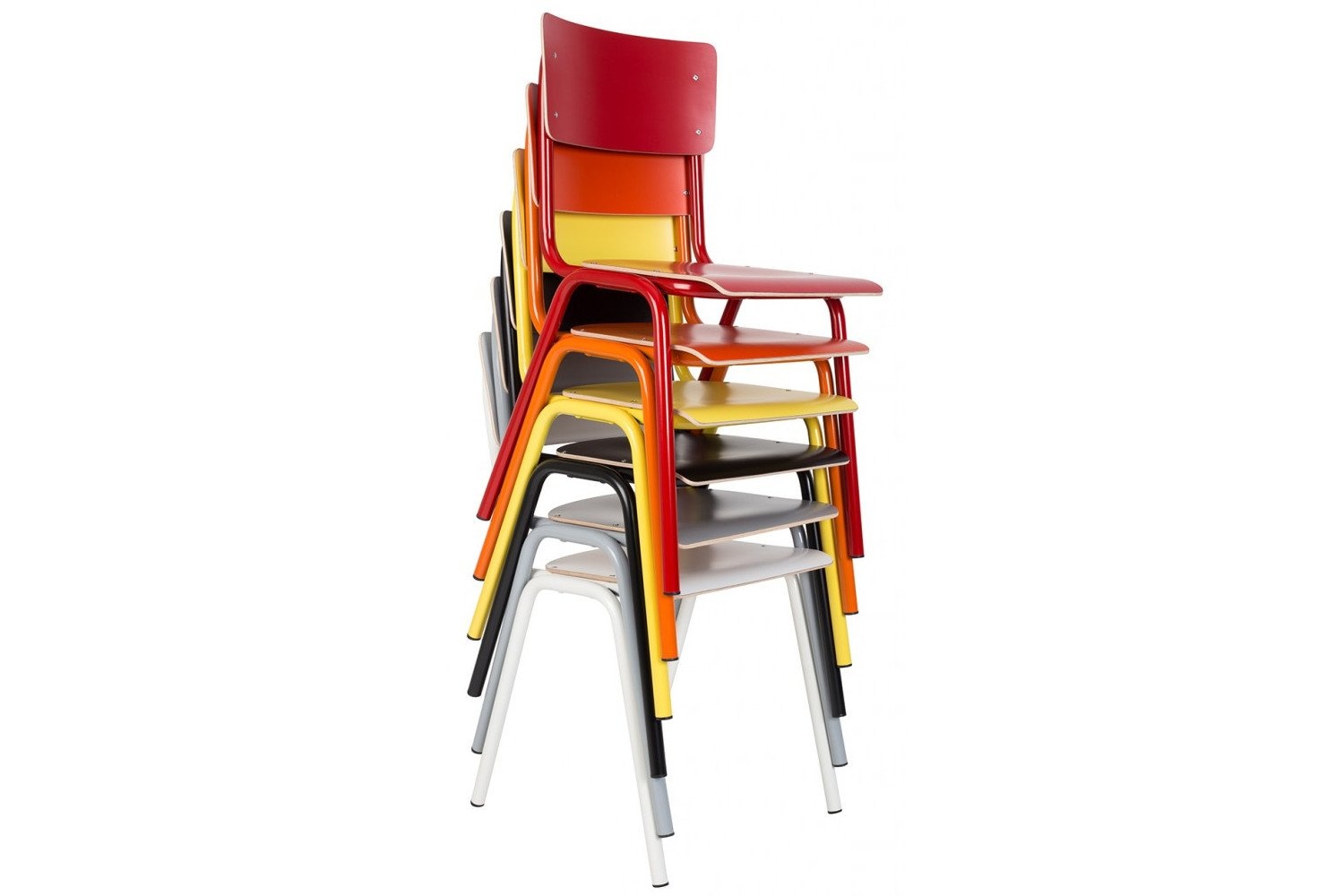 De Zuiver Back To School is een oldskool stoel die weer terug is in het assortiment! Echter zit de stoel nu vol met mooie kleuren, leuke aspecten en een hippe look. De zitting en rugleuning zijn van HPL plywood. Het stalen frame maakt dat de Back To School zeer efficiënt te stapelen is. Verkrijgbaar in zes kleuren: grijs, wit, zwart, geel, oranje en rood.