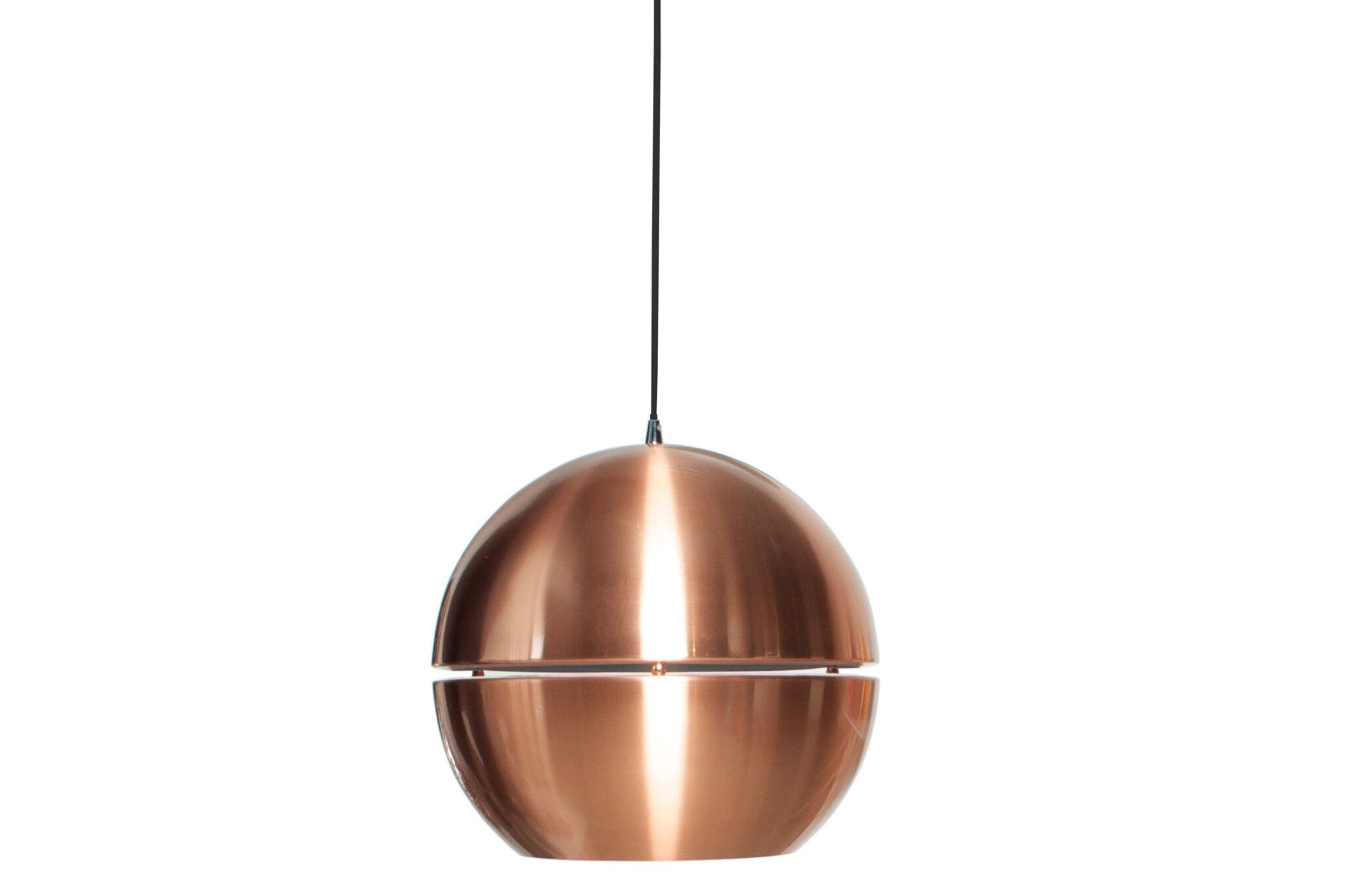 Retro '70 Copper design hanglamp is standaard voorzien van een zwarte stoffen snoer van circa 150 cm lang. De bolvormige koperen kap is gemaakt van metaal en heeft een afmeting van Ø 40 x H37 cm of Ø 50 x H47 cm en een E27 fitting. De totale hoogte van de hanglamp is 149 cm. Verder is Retro '70 Copper hanglamp tevens in chroom te verkrijgen.